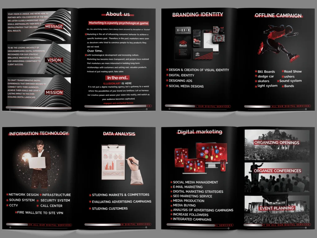 Our company faced a significant challenge in building a distinct visual identity in a competitive market. We developed a comprehensive branding strategy that included creating a distinctive name, designing an attractive logo, and choosing a color palette that reflects the company’s values. In addition, we designed a professional company profile that summarizes its vision and services.